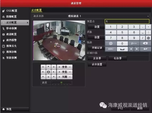 云台功能配置预置点、巡航、轨迹 1预置点