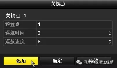 录像机:【云台配置】界面下,点击“巡航”下方的“配置”,逐一添加关键点。