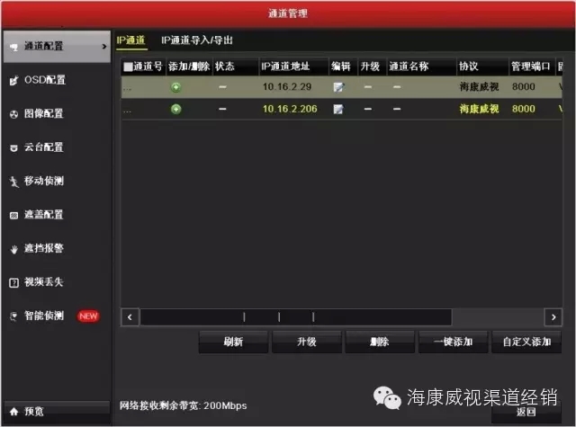 进入【主菜单】-【通道管理】-【通道配置】